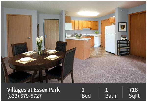 Description........ Renovated apartments completed! Come check out our new clubhouse, fitness center and pool! You will feel at home at the Villages at Essex Park Apartments! Our beautiful one, two, and three bedroom rentals include huge living spaces, a private patio or balcony, and large, uniquely designed kitchens! Located in Rochester, MN, there are endless opportunities for dining, shopping, and entertainment. Look no further! Call the Villages at Essex Park to schedule a private tour of your new apartment home! Recipient of 2011 Satisfacts Superior Resident Satisfaction Award. Live Smoke Free & Breathe Easier! Ask about our Smoke Free Living today!