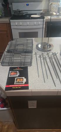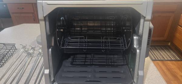 Ronco "Showtime" Rotisserie & BBQ. Platinum Model w/ Digital Timer, 3-way function (Normal-Cool-Sear). Includes Spit Assembly, Kebob rods, Drip Tray w/ Grate Cover, Spit Loading Base for countertop, Small Food Basket, & Flat Standard Food Basket (10"x9 1/2"x1 1/2").