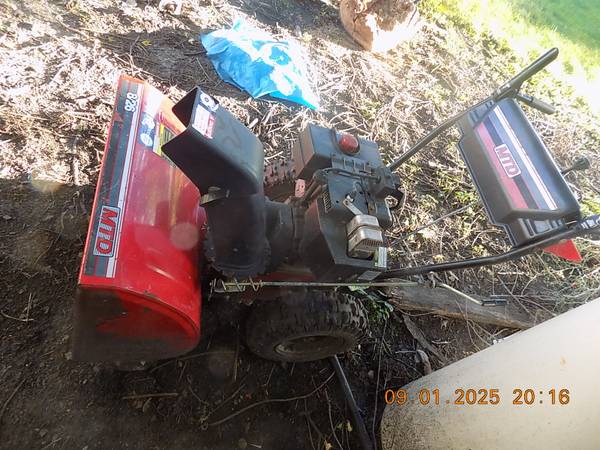 MTD 8hp, 110V electric start, 26 inch wide cut. runs good text only to to nine five one 3896
