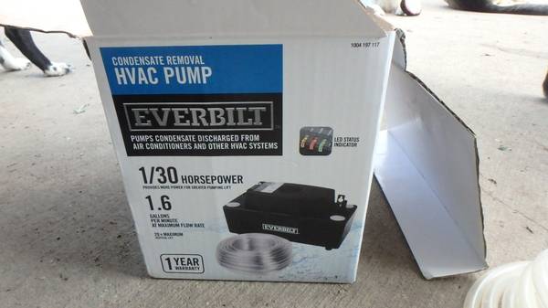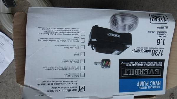 I was given a used Hvac pump for condensation, I never used it. Plugged it in and the motor runs. Has original box, owners manual, plus extra tubing. There is also unused wiring with it. Doesn't look to be in bad condition. You can attach a hose and it will drain automatically. Meet near Owatonna.