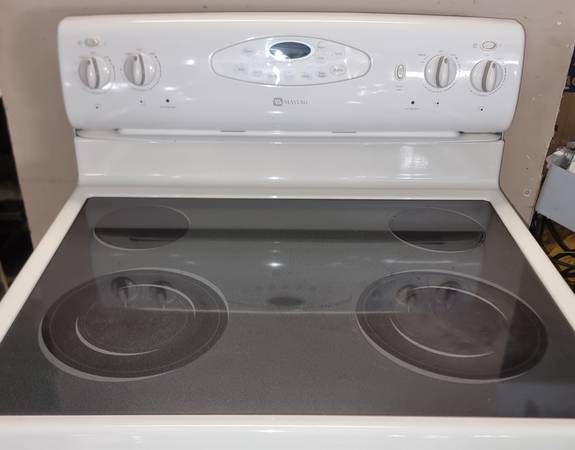 Maytag Glasstop Electric Stove Clean and works great 30" W Bisque color Delivery available Call or text 5zero7 301 5921