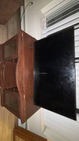 There is a small crack on the inside board there is a picture. I tried to capture that as best that I could without a video . I believe it is picture number two. Tv comes free with this purchase, if...