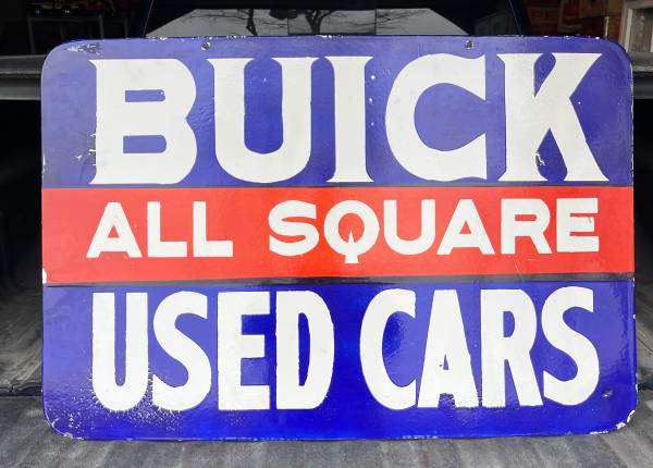 Very Heavy Porcelain Buick Used Cars Sign. Measures approx 36” X 24” Double Sided.