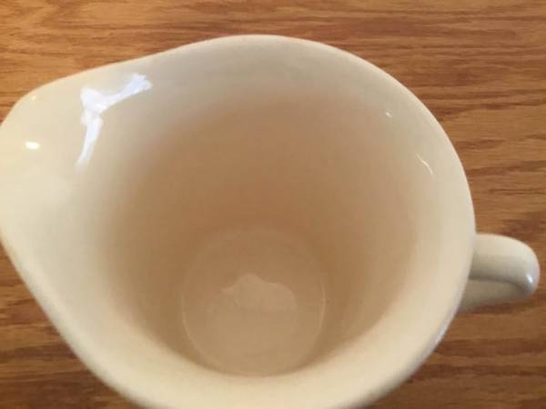 This cream pitcher measures 4” tall and 3.5" in diameter.