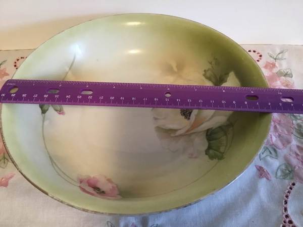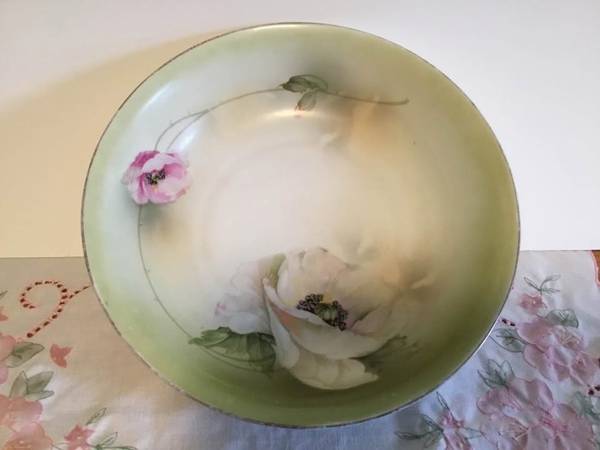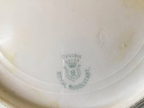 Hand painted in Germany in the early 20th century, 1900-1920ish. Back stamped on bottom by Royal Rudelstadt, which identifies with Prussia (northern area of Germany.)