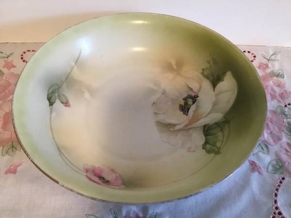 Flowers are anemones, and painted in pale pink and green. Matte interior
