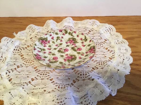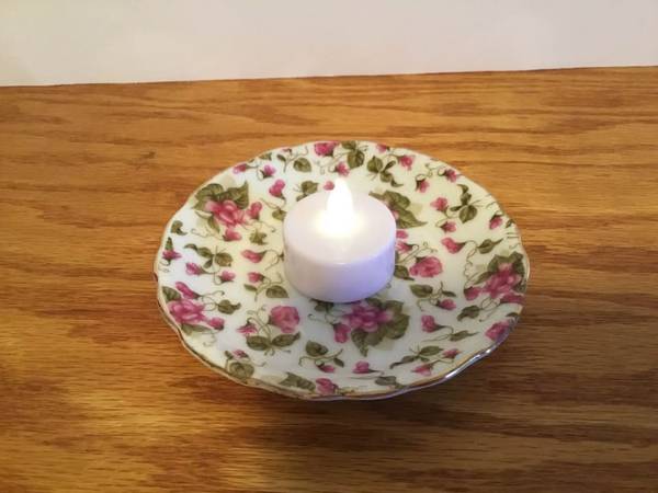 Vintage 1940's APR Japan Rose Chintz Gold Leaf Saucer No cup - can be used as jewelry trinket dish, candy dish or candle holder as shown Pick up at my home in Plainview 507-216- 5 three three 4- no...