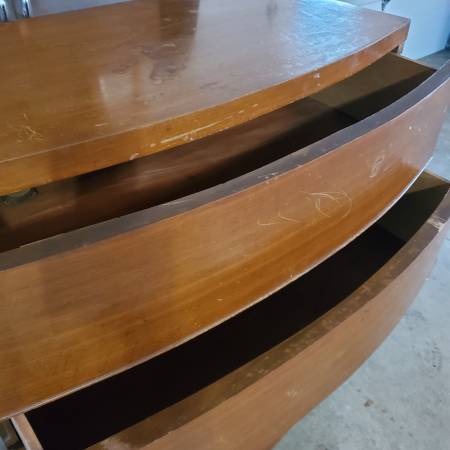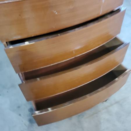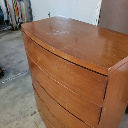 Hi everyone, is this "mid century modern rustic historic" high boy dresser worth 75 bucks? It needs love but is in fair shape for what it is. A couple of pieces are off but I have them. Is actually on little casters that appear to be original, drawers, with side handle recesses, open and close etc. If interested, please call or text show contact info