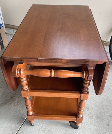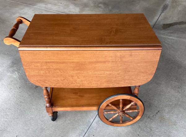 VTG Mid-Century TELL CITY Drop Leaf Table Bar Tea Cart Serving Trolley W/Handle