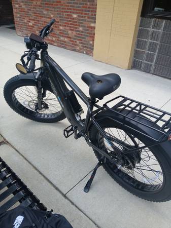 Purchased less than 2 months ago new from Best Buy. 750 watt motor. Includes 20 amp hour battery, rack, fenders, suspension seatpost, elite headlight, original 2 amp charger plus a 5 amp fast...