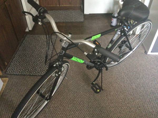 New Kent 700 front runner 28 in wheel. Riden only once, no longer needed. This price includes tire pump, extra seat and bike spray oil. Black/green in color. Cash only and you will need to meet or...