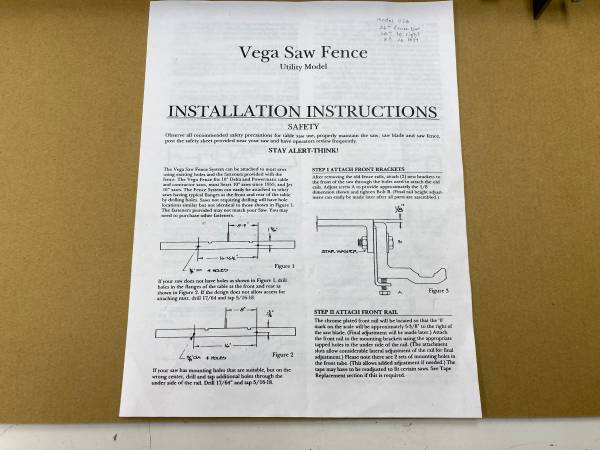 Vega Model U26 table saw fence which is similar to Biesemeyer or Delta T3 t-style fences. Currently $350 new at Rockler or Amazon. -Uses existing bolt holes (no drilling required) of Delta Unisaws...