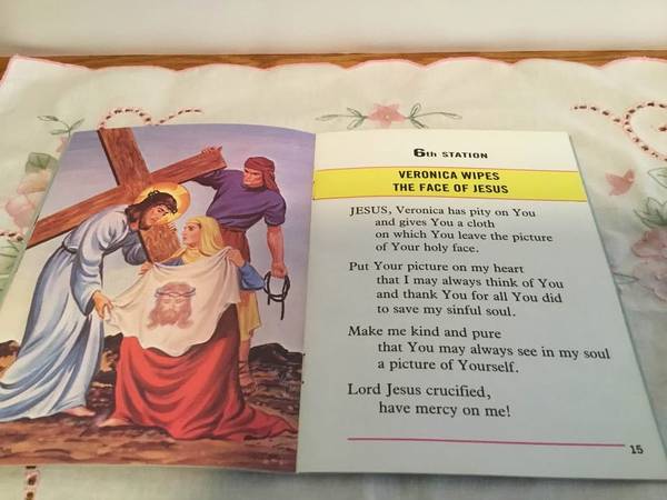 ~full-color illustrations depicting the Stations of the Cross a prayer to Jesus at each of the fourteen Stations and a concluding prayer