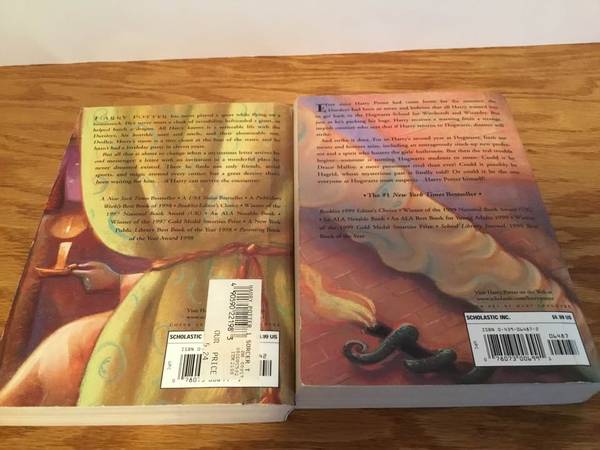 Two Harry Potter books ~ J.K. Rowling The Sorcerer's Stone (#1) The Chamber of Secrets (#2) Scholastic paperbacks pick up at my home in Plainview 507-216-5 three three 4- no texting at this number $5
