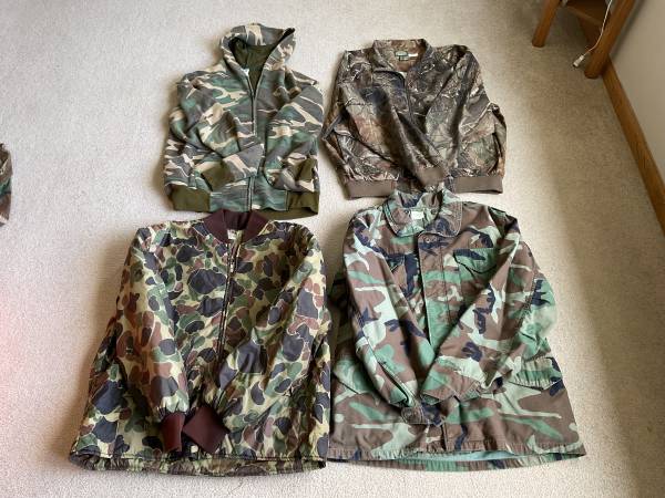 Several size large hunting jackets $3.00-$50.00 depending on the jacket. The orange jacket is a two in one for $50.00.