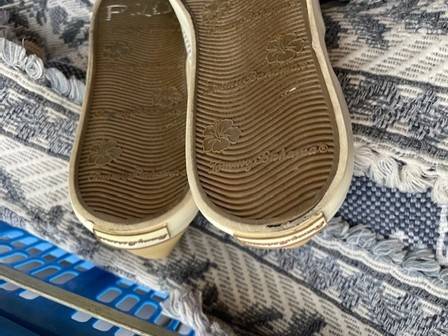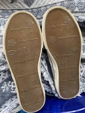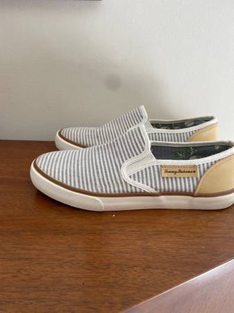 Brand: Tommy Bahamas Size: 6.5 Material: Fabric (Textile) Textile Upper Outsole with textile This pair of boat shoes comfortable wearing White w/blue stripes and light brown heels
