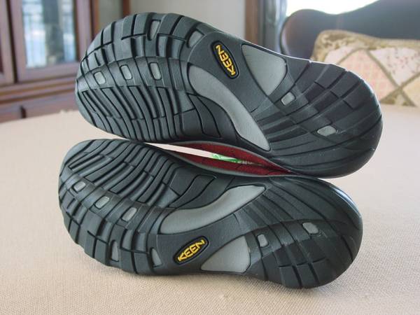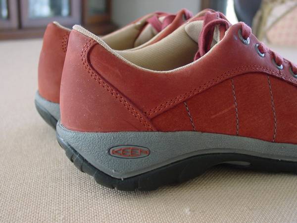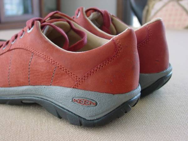 Wonderful new old stock Keen Presidio lace-up shoes in women's size 7-1/2. Features burnt henna red uppers and matching laces as shown.