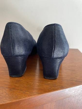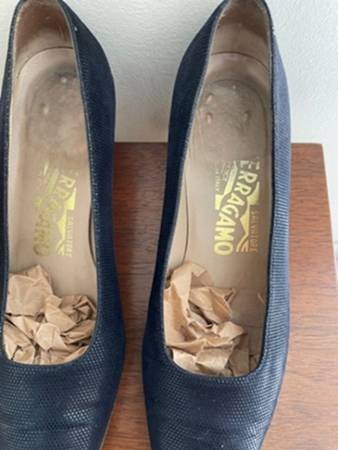Brand: Salvatore Ferragamo Size: 5.5B Color: Navy Blue Material: - Upper: Textured Leather - Under: Leather These shoes are almost new, not worn for 5 years at least.