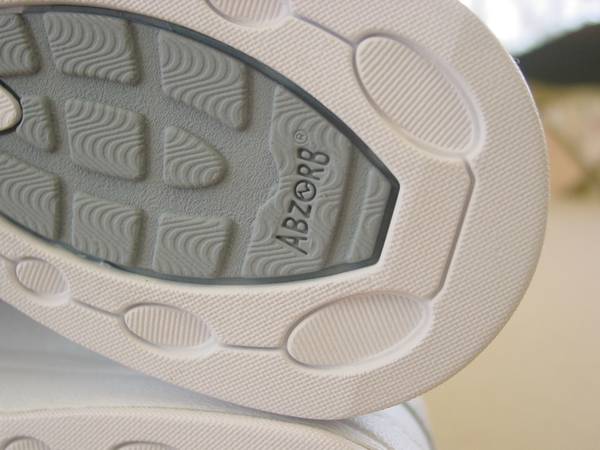 Wonderful brand new old stock New Balance 573 athletic or walking shoes in women's size 7 D wide. Great pair of vintage sneakers in solid white. Features special embroidered breast cancer awareness pink ribbons, SL-2 Fit Walking inner soles, and Abzorb Walking Strike Path outer soles as shown.