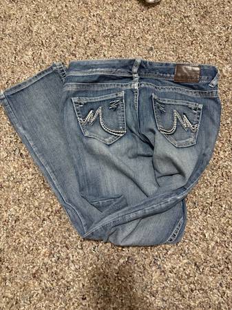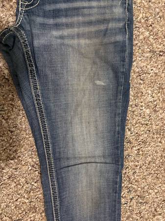 Lot of 11 pairs of used women’s jeans. Some are newer/less used than other. Some are in good shape but have stains. Pictures include the legs showing the stains, and also the color/wash of the jeans (may not have stains). Styles vary. $50 for all 11 pairs.