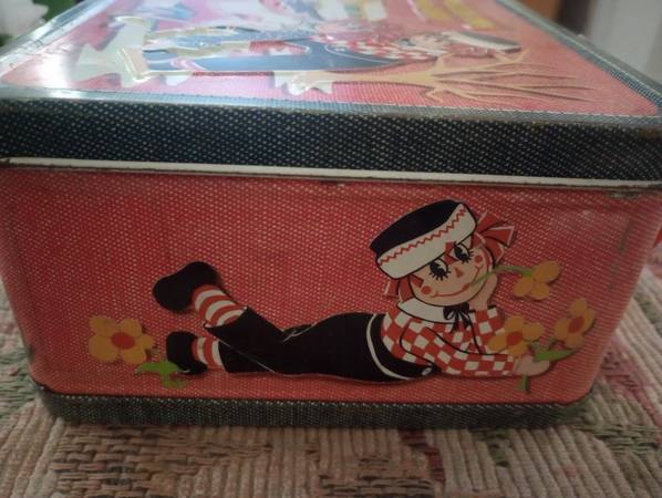 I have a 1973 Raggedy Ann and Andy lunch box. I do not have the thermos. It has minimal rust inside other than that it is in pretty good shape no major dents, or scrapes. I am asking $15 or best offer. Phone calls only. Text and emails will be deleted unread.