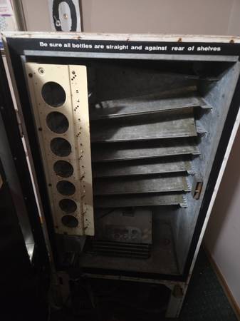 1950's Vendorlator 56, RC Cola Pop Bottle Machine. Good shape, Dad's Rootbeer and RC Cola decals on both sides too. Has Key. Bottle window cracked at bottom. Email for more info.
