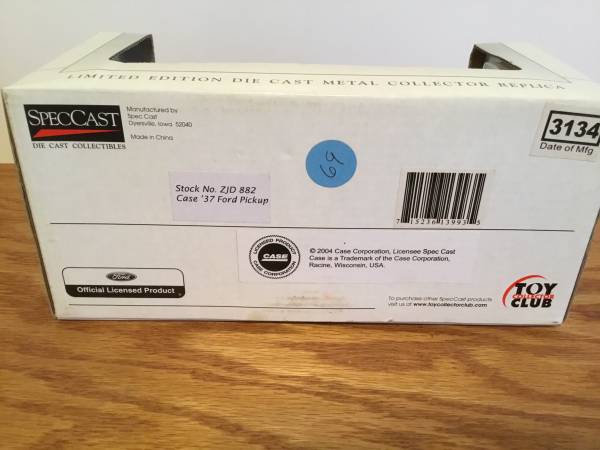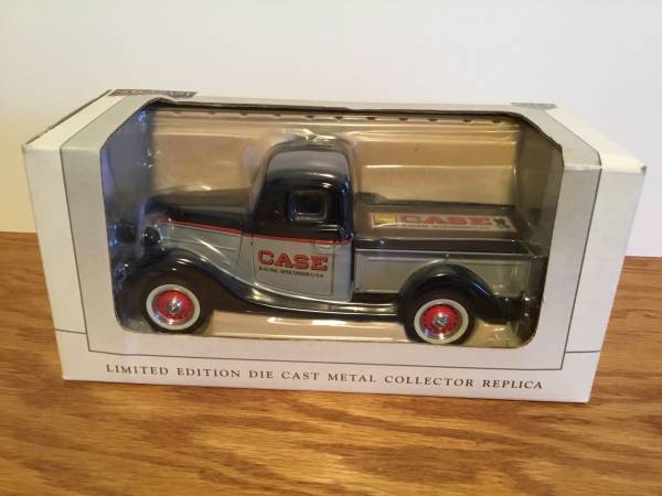 Case 1937 Ford Die cast metal In original box Writing on door : CASE Racine Wisconsin U-S-A $18 cash Pickup in rural Plainview 507-216-5 three three 4 - no texting at this number