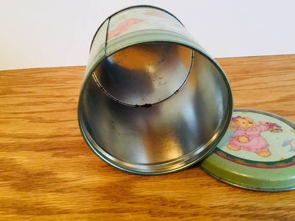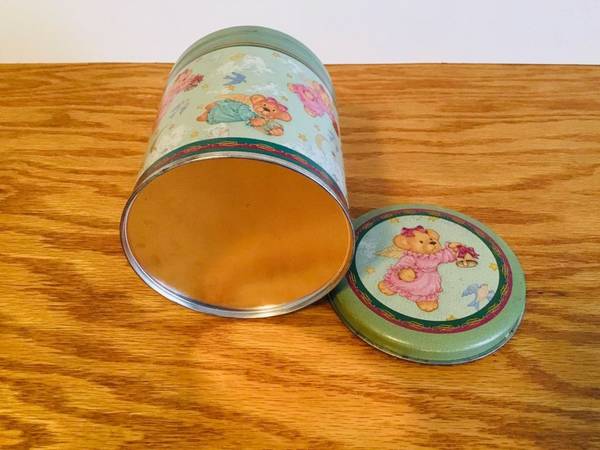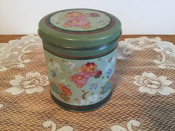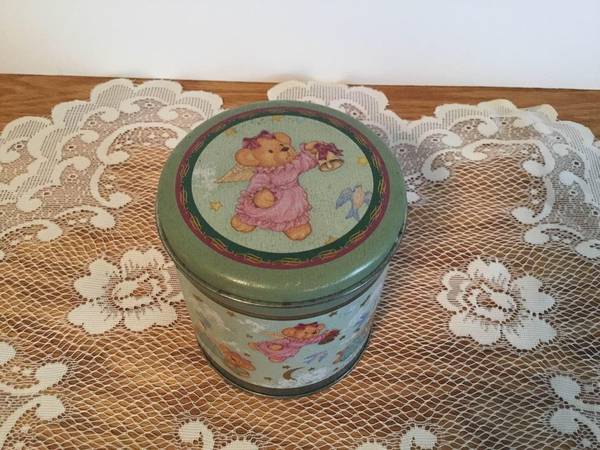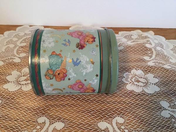 Angel Teddy Bear Tin by Avon ~ VTG mint green color with adorable teddy angels design in pastel colors pick up at my home in Plainview 507-216-5 three three 4- no texting at this number $2