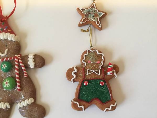 Two gingerbread ornaments like new Pick up at my home in Plainview 507-216-5 three three 4- no texting at this number $3