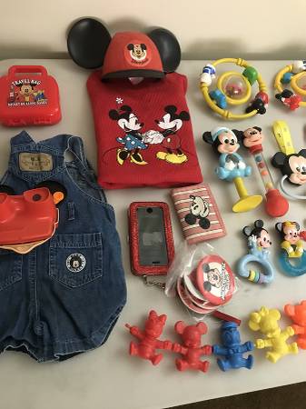 Looking for collector interested in huge lot of Mickey & Minnie Mouse collectibles and toys. Includes plastic toys, clothing, plush, books, glassware, etc. See photos. There is slightly more...
