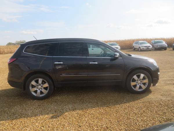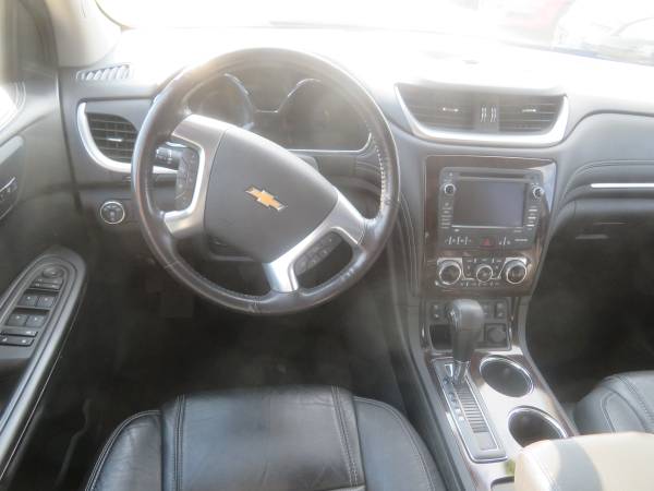 2015 CHEVY TRAVERSE LTZ, AWD, 3,6L, 143K, PW, PL, AM/FM/CD/NAV., DVD, POWER HEATED AND COOLED LEATHER SEATS, DRIVER'S HEATED SEAT DOES NOT WORK, 3RD ROW SEATING, BACK UP CAMERA, REMOTE START, GOOD TIRES, VERY CLEAN, RUNS AND DRIVES GREAT.