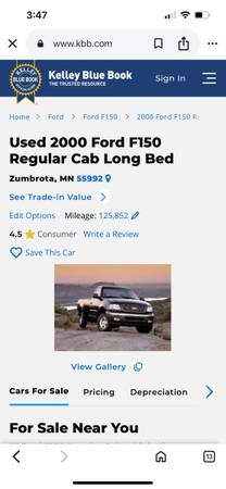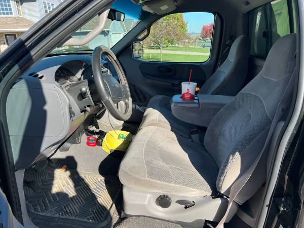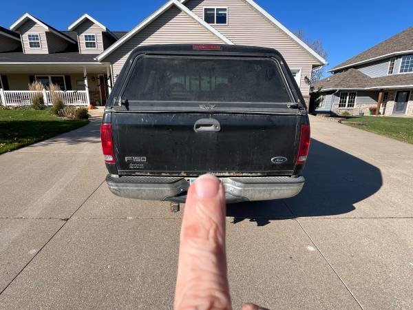 2nd owner of a F150 XLT 5.4 L. Triton. 125,852 original miles. No accidents, all original. The mileage will go up a smidgen, I’m still driving it to work. Everything works: AC, 4x4, power steering, power windows, radio, etc. 8’ box. Very good running truck.