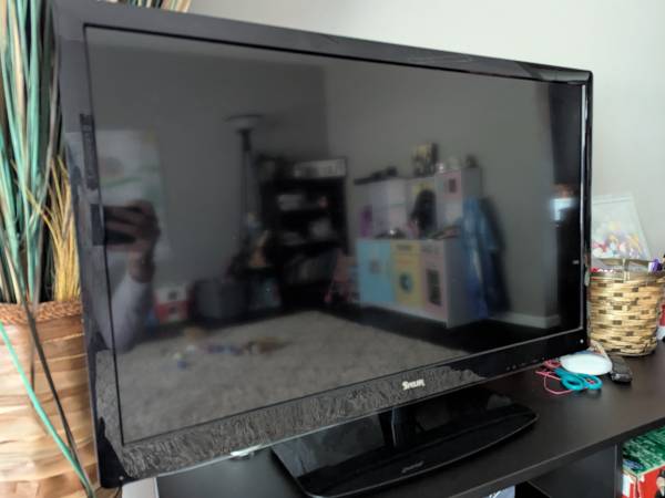 The TV measures 32 in diagonal. It is 29 and 1/2 in wide and 20 and 1/2 in tall (on the stand). It has three HDMI hookups and a USB plug in. It comes with a remote.