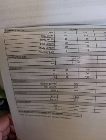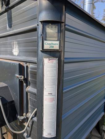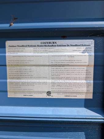 Cozeburn 250 wood boiler. Already disconnected and ready to move. Will come with approximately 50' of used insulated supply/return tubing, stainless chimney pipe as shown in photos, and the water to...