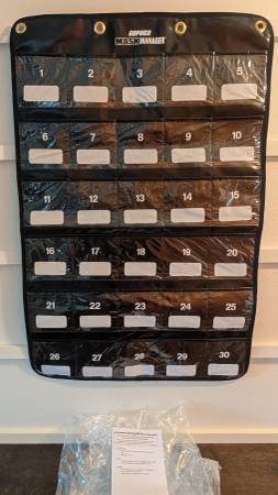 Multipurpose Heavy Duty Numbered 30 Pocket Hanging Organizer- use for cell phones, calendar, keys, masks, student Info, ANYTHING! 145 Available- $5 Each Pick up in Owatonna.
