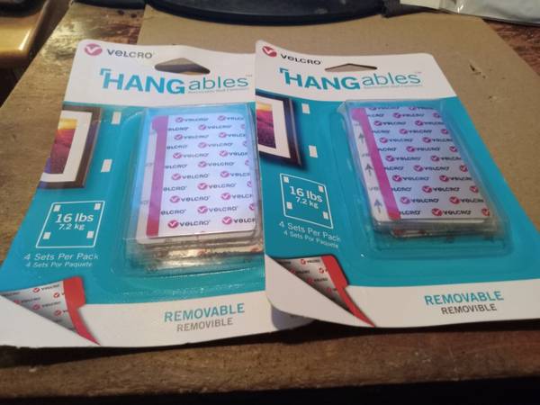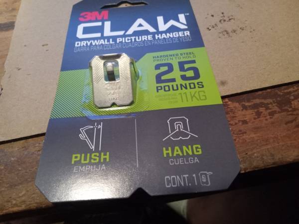 claw drywall picture hanger 15 pounds 2 of them 5 dollars each.... claw drywall picture hanger 25 pounds for 8 dollars ....velcro hangables 16 pounds for 5 dollars .... calls only do not text me