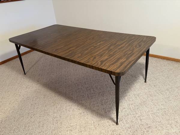 Table is 82 inches long x 42 wide or 60 inches long with both leaves out. Asking $50 (507) 259-571seven