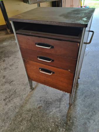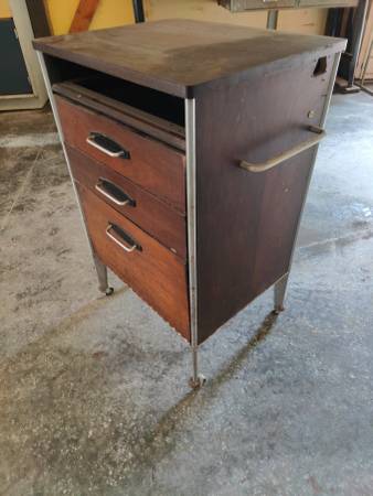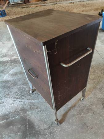 barber or beauty cabinet, or storage, solid, with coasters, used