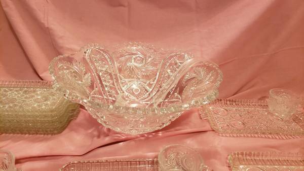 Large glass punch bowl including laddle and set of 12 rectangular glass dishes and cups. Will include extra 7 rectangular plates(no cups). Used for wedding reception, but could be used for birthday or quinceanra party. Would like to see go to good use. $10 for everything. Could meet at a location in Eyota if perferred.