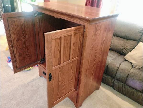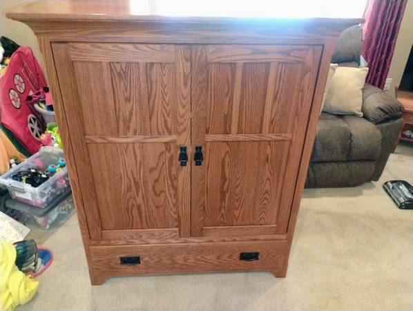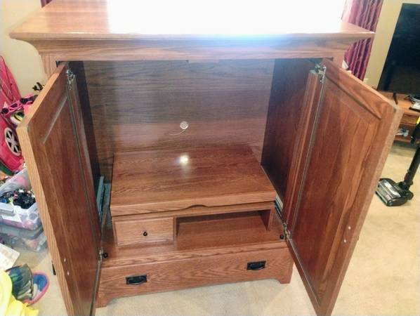Amish television cabinet with drawers. 32 inch tv fits inside. $150.00 or best offer. Cash only