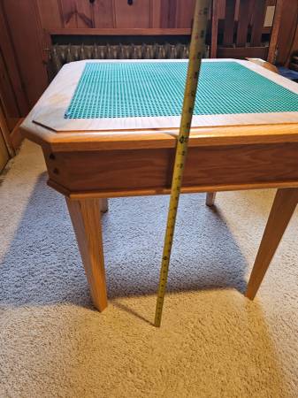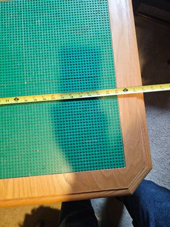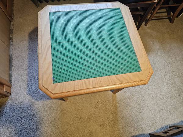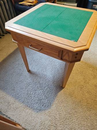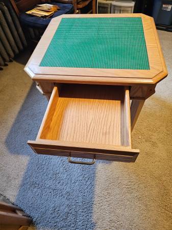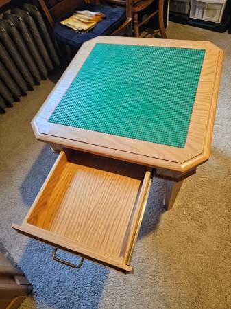 Custom Oak Lego table 24" high with a drawer. Top is 26 x 26" with 4 lego pads glued to top of the table.
