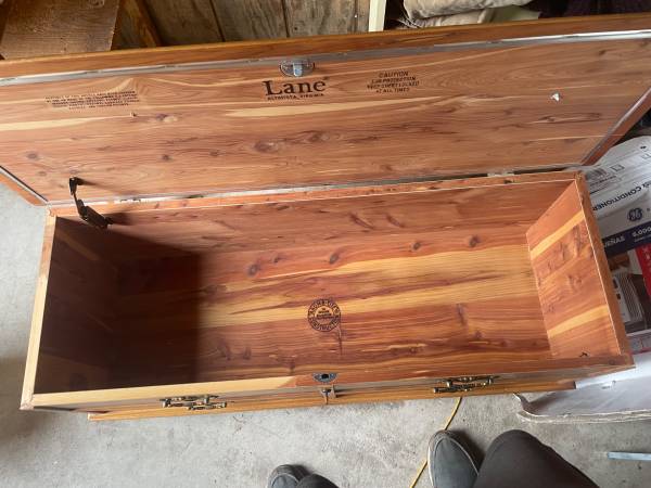 Your child or spouse or even you yourself have keepsakes to hold (at the foot of your bed?) and has a history of life, or your dreams of new life that can be held in this chest for remembrances. Cedar lined it still carries a hint of the trees scent, considered a protectant from insects. Just a little bit of history…Lane guaranteed it against a moth infestation!!