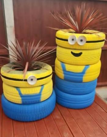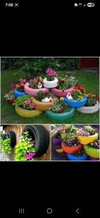 Old car tires. Here are ideas you can do with the tires for those of you who are crafty. Pictures are ideas...tires you are getting for free are just standard, black car tires. You'd decorate...