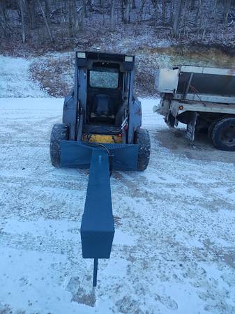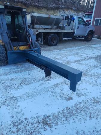 Hydraulic wood splitter for skid loader. Simple units, everything it needs to do the job, nothing you don't, built with off the shelf parts, heavy duty, new construction. New cylinder, new hoses, fittings and flat face couplers. 8" tall x 6.5" wide beams 10"tall x 6" deep x 1" thick wedge. CNC cut slide parts and cylinder mount. Diamond plate step, lifting eye on top. Ready to work. CASH ONLY pick up in Houston MN.