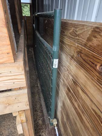Green Sheep Gate - $200. Length: 162 inches, height: 51 inches. Has a dent in it from horses being horses (spazzing out). Still straight and works great, just has a dent in the middle (photo of dent included). We also have another gate we are willing to part with also if someone is interested with a section cut out to allow sheep in/out (made to deny larger animals out of sheep area). Located in between Faribault & Kenyon, MN.