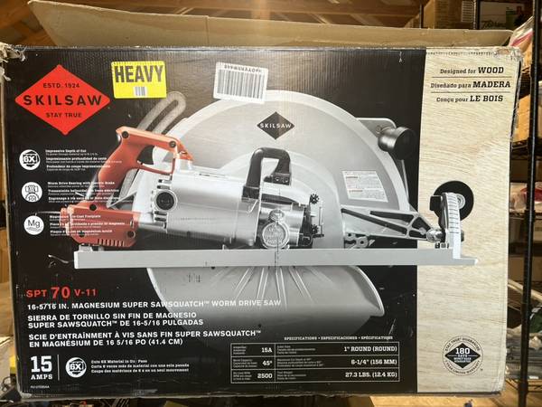 SAWSQUATCH™ WORM DRIVE SPT 70 V-11 16-5/16 IN. MAGNESIUM SUPER Like new. I only cut 13 timbers with it. Has a nice carrying case. Use for timber frame construction. $850 Over $1,000 new. 507 blank...