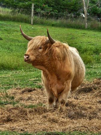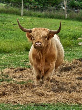 4 year old highland bull. Well muscled. Husband's pet. Excellent breeder. Keeping some of his heifers so he needs a new home