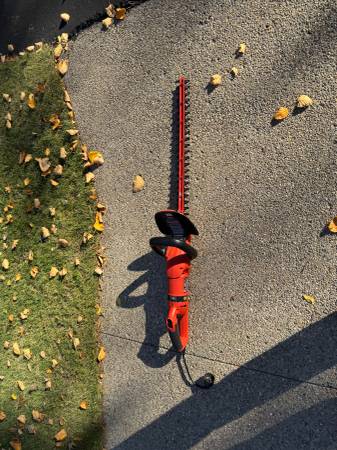 gently used hedge trimmer with owners manual. upgraded to cordless trimmer. rotating handle.