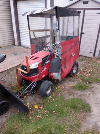 Snow is coming don't get caught with your pants down. Huskee garden tractor blade and mower deck deck used 3 times tractor and blade not used much. This is like a new tractor not used much. Don't use anymore just set there. 2 tire leak air from setting. I think I got the tires fixed. look on marketplce there has a wheelhorse selling for $1500 this is bargin. cab don't look like much but when the wind is blowing 50 MPR it will keep you warm.