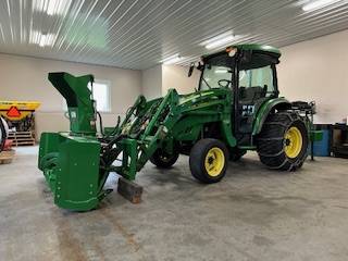 Includes, like new, 2016 Frontier SB2176 74” snowblower. Loader mounted with rear threepoint hydropack, hydraulic chute rotate and deflector, tire chains, and CAT 1 I-Hitch included.